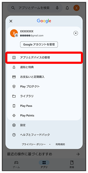 Google Play画面で、検索バーの右側のアカウントアイコンをタップアプリをタップ- アプリによっては、自動更新を許可できないものもあります。