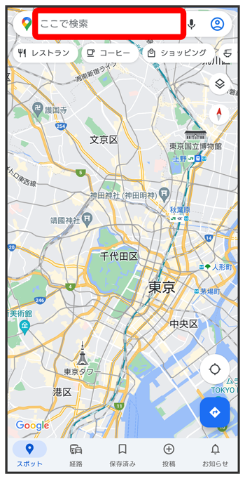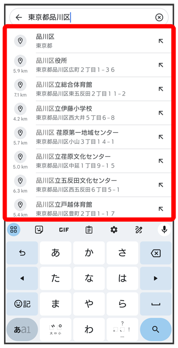 住所や都市、施設名などを入力選択候補から住所や都市、施設名などをタップ