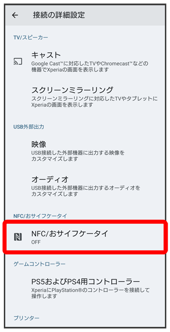 と操作してもNFC/おサイフケータイ®設定画面を表示することができます。