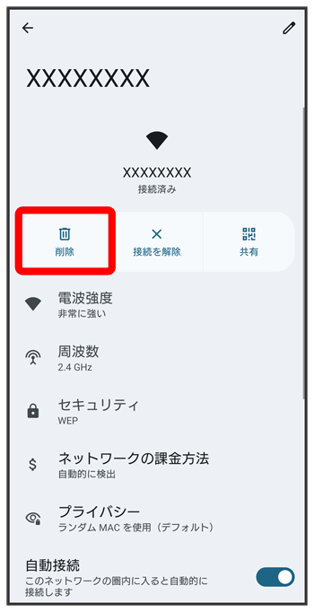Wi-Fi ネットワークが削除されます。