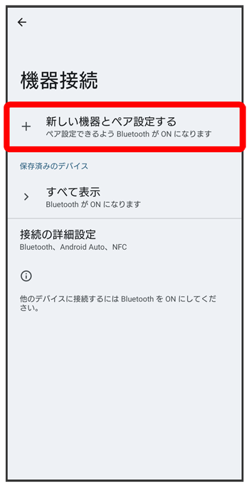 - 機器接続画面の上部に、ペア設定中のBluetooth機器が表示されます。
