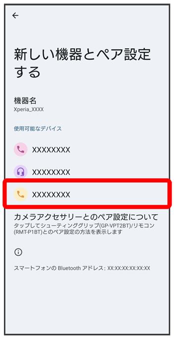 「使用可能なデバイス」欄に、近くにあるBluetooth機器が表示されます。