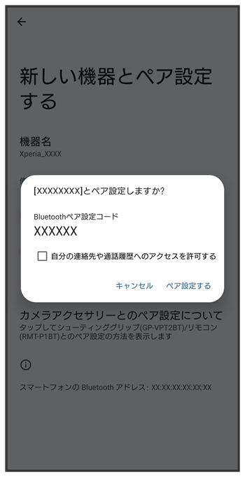 機器接続画面でペア設定中の機器をタップ/ペア設定中の機器の