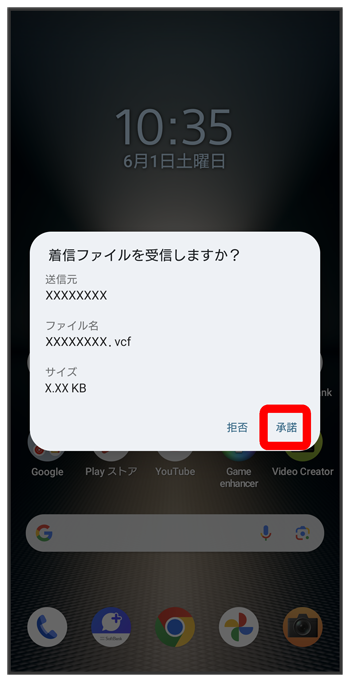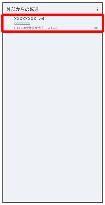 ステータスバーを下にフリック着信ファイルの通知をタップ