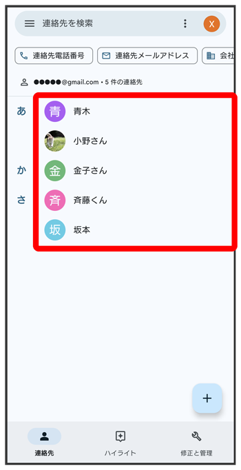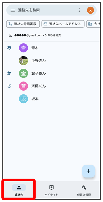 表示)続けてほかの対象の連絡先をタップと操作します。