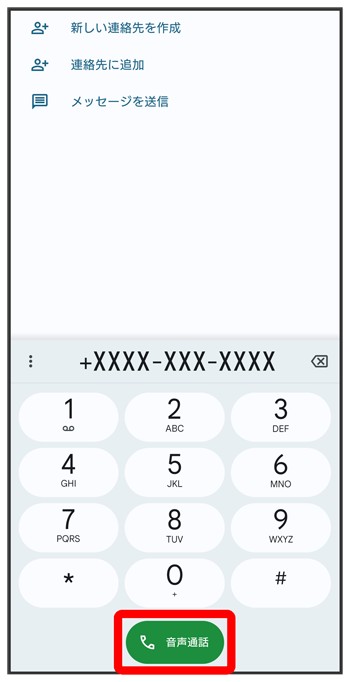 国番号のあとに相手の電話番号(先頭の「0」を除く)を入力