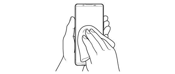 - 特に受話口/スピーカー、送話口/マイク、スピーカー、USB Type-C接続端子、セカンドマイク、サードマイク、ヘッドセット接続端子、電源キー/指紋センサー、音量キー/ズームキー(上下)、シャッターキー、SIMカード/SDカード挿入口のカバー、カメラリング(メインカメラ周辺部)は水が抜けにくいため、布などに押し付けるように下向きにして拭き取ってください。