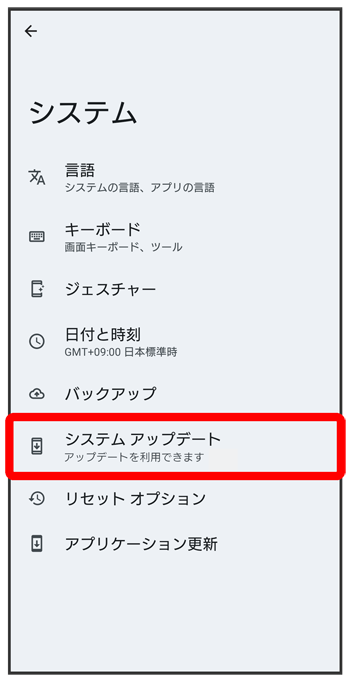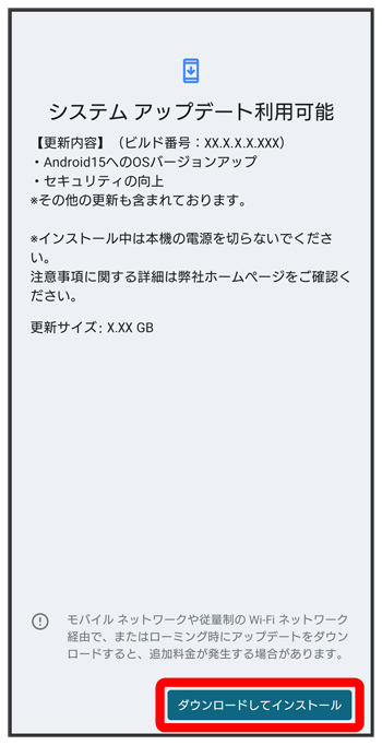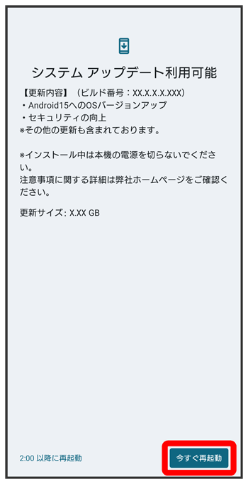 通知パネルに表示されるソフトウェア更新の通知をタップし、画面の指示に従って操作してください。