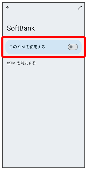 ここでは、端末内に1つのeSIMがダウンロードされている場合を例に説明します。