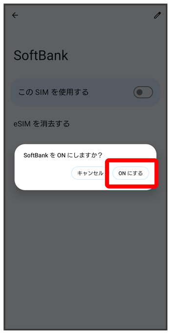 - 本機をデュアルSIMでお使いの場合にeSIMを有効にするときは、をタップしてください。以降は、画面の指示に従って操作してください。