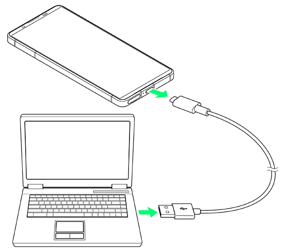 パソコンのUSB端子に、PC接続用USB Type-CケーブルのUSBプラグを差し込む
