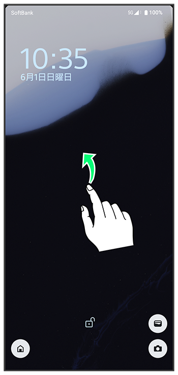- 指紋を登録済みの場合は、登録した指を指紋センサーに触れることで、画面ロックを解除できます。指紋の登録について詳しくは、「指紋を登録する」を参照してください。