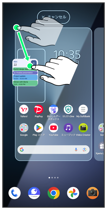 - 追加操作を中止する場合は、画面上部のまでドラッグします。