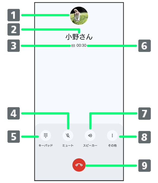 - 連絡先に登録している相手の名前/電話番号が表示されます。