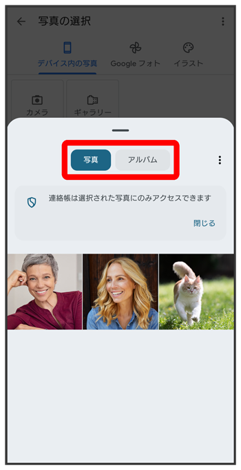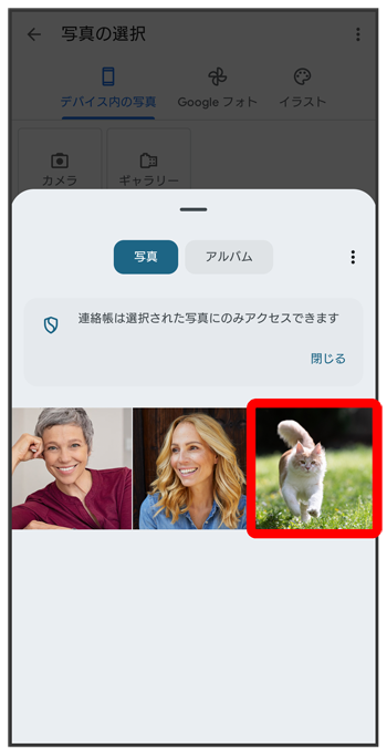 - /をタップすると、フォト内の画像やイラストを設定できます。