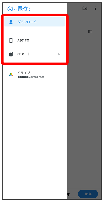 - 端末内へ保存したい場合は機種名/ダウンロードを選択します。
