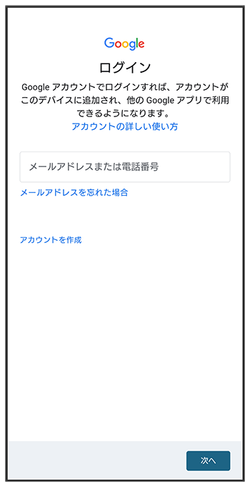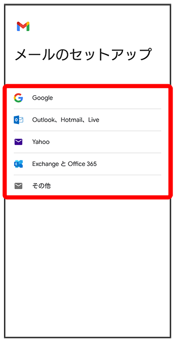 Gmailを利用するには、Google アカウントまたはeメールアカウントの設定が必要です。