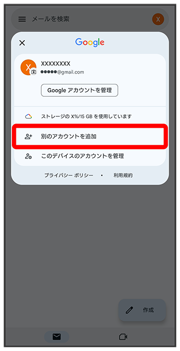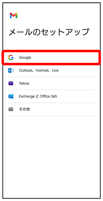 ここではGoogle のメールアカウントの追加を例に説明しています。