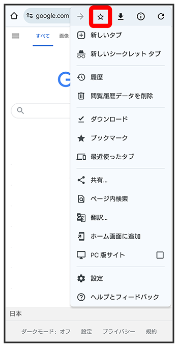 表示中のウェブサイトがブックマークに登録されます。