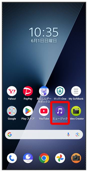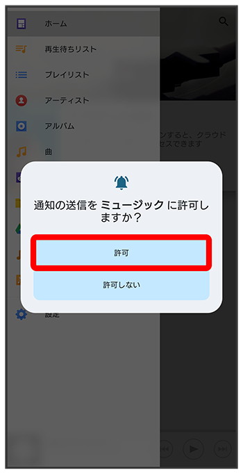 (ミュージック)をはじめて起動したときの操作を例に説明します。