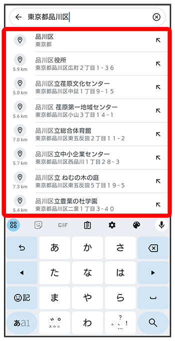 住所や都市、施設名などを入力選択候補から住所や都市、施設名などをタップ
