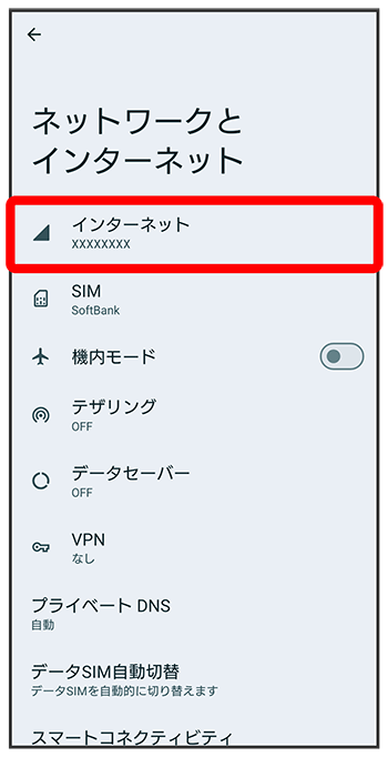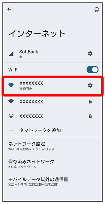インターネット画面で、接続中のWi-Fi ネットワークをタップ