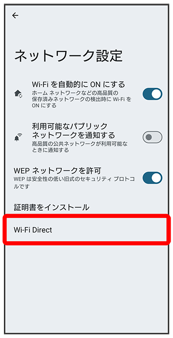 - 「ピアデバイス」欄に、近くにあるWi-Fi Direct機器が表示されます。