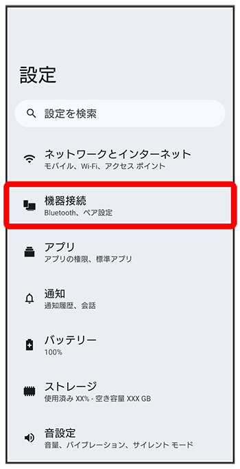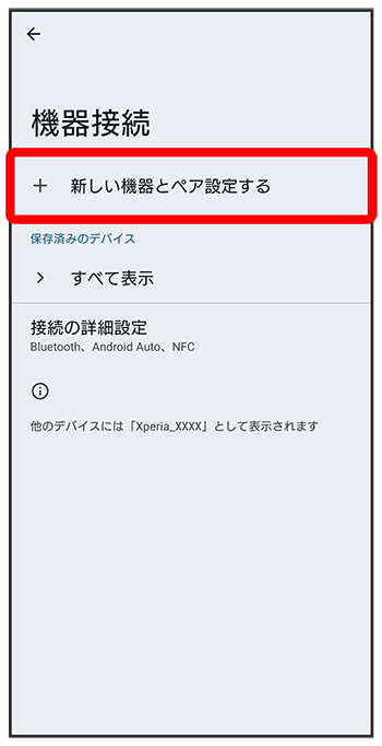 - 機器接続画面の上部に、ペア設定中のBluetooth機器が表示されます。