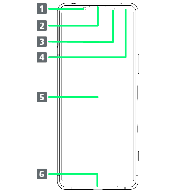| 近接/明るさセンサー | 通話中に顔の接近を感知し、画面の消灯/点灯を切り替えて誤動作を防止したり、画面の明るさの自動制御に使用したりします。 |
