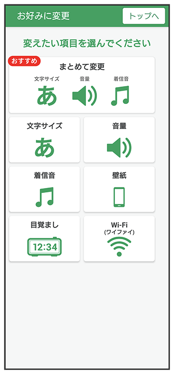 「お好みに変更」からスマホの基本的な設定をかんたんに変更することができます。