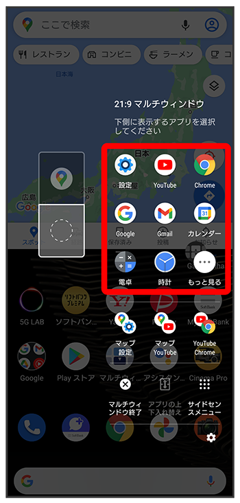 - サイドセンスバーをダブルタップと操作してもマルチウィンドウメニューを表示できます。