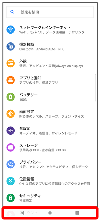 | タップするとホーム画面を表示します。 ロングタッチするとGoogle アシスタントを起動できます。 | |