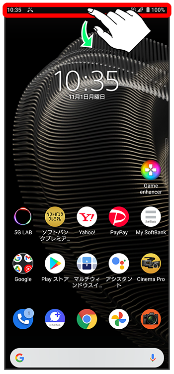 ステータスバーを下にフリック