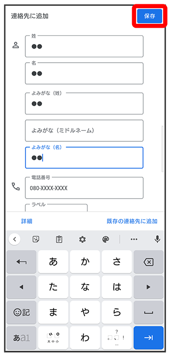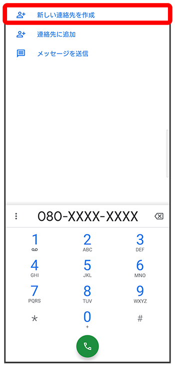 ダイヤルキーをタップして、登録したい電話番号を入力