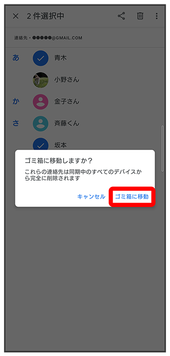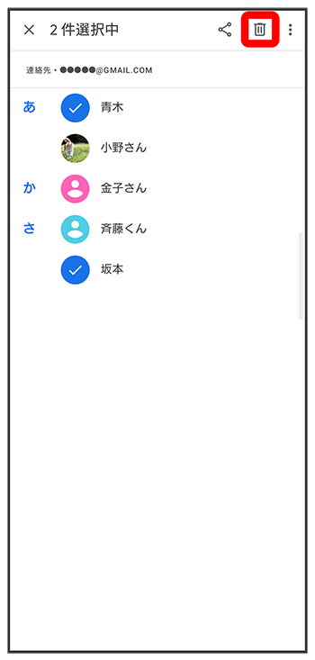 - 複数の連絡先を削除する場合は、対象の連絡先をロングタッチ(