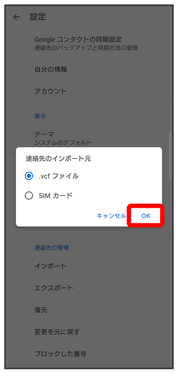 SDカードから電話帳データを読み込む