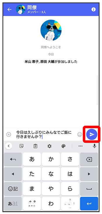 グループメッセージ内で、宛先を指定してメッセージを送信することができます。