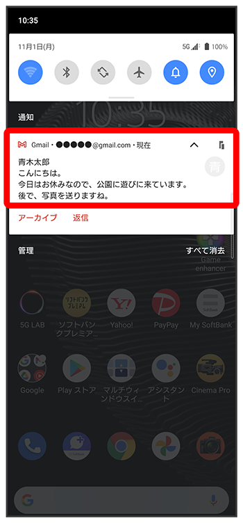 - 新着メールが2件以上あるときは、メール一覧画面が表示されます。確認する新着メールをタップしてください。