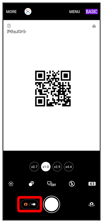 をタップして「フォト」撮影画面を表示(