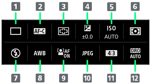 | 縦横比 | 「4.3(12MP)」「16:9(9MP)」「1.1(9MP)」「3:2(10MP)」から選択します。 |