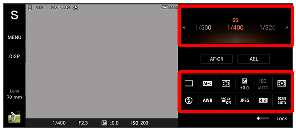 撮影画面で「AUTO」/「P」/「S」/「M」モードを選択設定を変更
