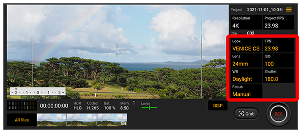 | ISO | ISO感度を変更します。 •「Auto」がオレンジ色のときにタップすると、設定や環境に合わせて自動でISO感度が設定されます。 |