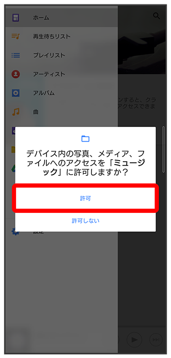 (ミュージック)をはじめて起動したときの操作を例に説明します。