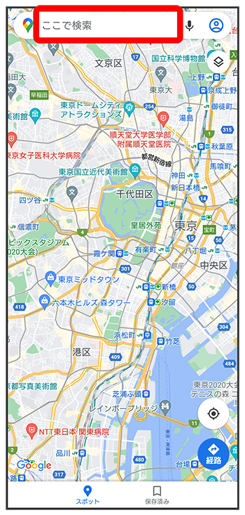 住所や都市、施設名などを入力選択候補から住所や都市、施設名などをタップ
