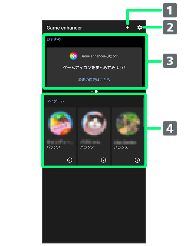 おすすめのゲームやGame enhancerの機能紹介が表示されます。 - マイゲーム
