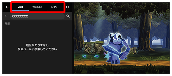 をタップします。 - 「APPS」タブでアプリをタップすると、ポップアップウィンドウでアプリが表示されます。ポップアップウィンドウをタップすると、操作アイコンが表示されます。詳しくは、「APPS画面(ポップアップウィンドウ)の見かた」を参照してください。