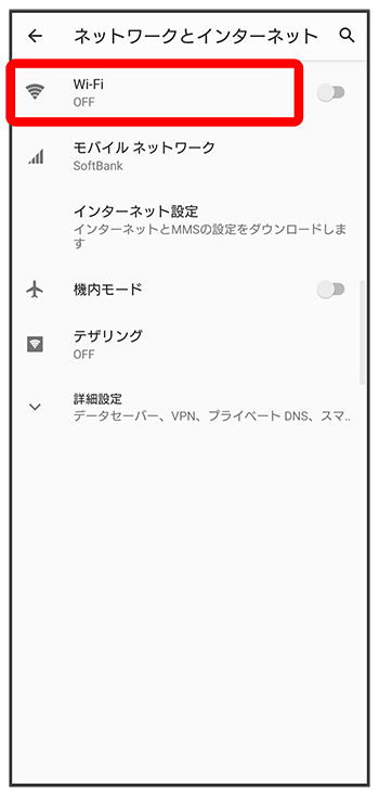 Wi-Fi 画面で設定したいネットワークをタップ- をタップするたびに、設定(