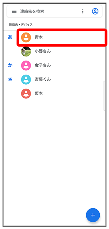 表示)続けてほかの対象の連絡先をタップと操作します。