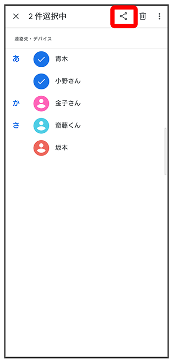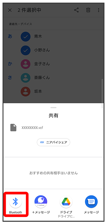 - 複数の連絡先を送信する場合は、対象の連絡先をロングタッチ(