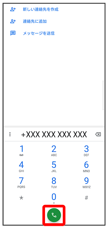 国番号のあとに相手の電話番号(先頭の「0」を除く)を入力